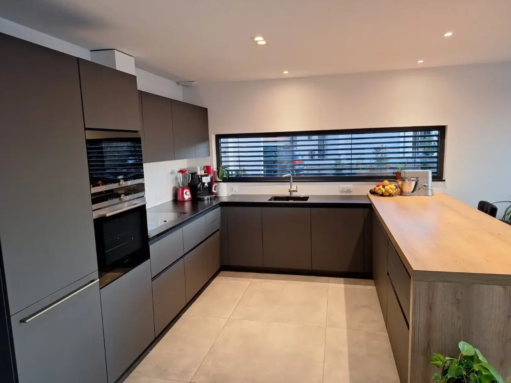 Dans cette maison neuve située à Moernach, à quelques minutes d’Altkirch, Arteco Boutique a réalisé l’aménagement d’une cuisine sur-mesure. L’objectif était de créer un espace à la fois fonctionnel et design, capable de s’intégrer harmonieusement dans le nouveau logement tout en répondant aux besoins quotidiens des habitants.